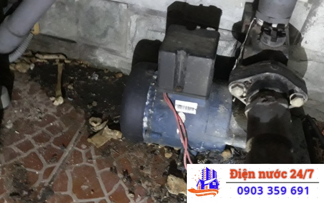 Máy bơm nước bị cháy, quấn lại máy bơm nước.